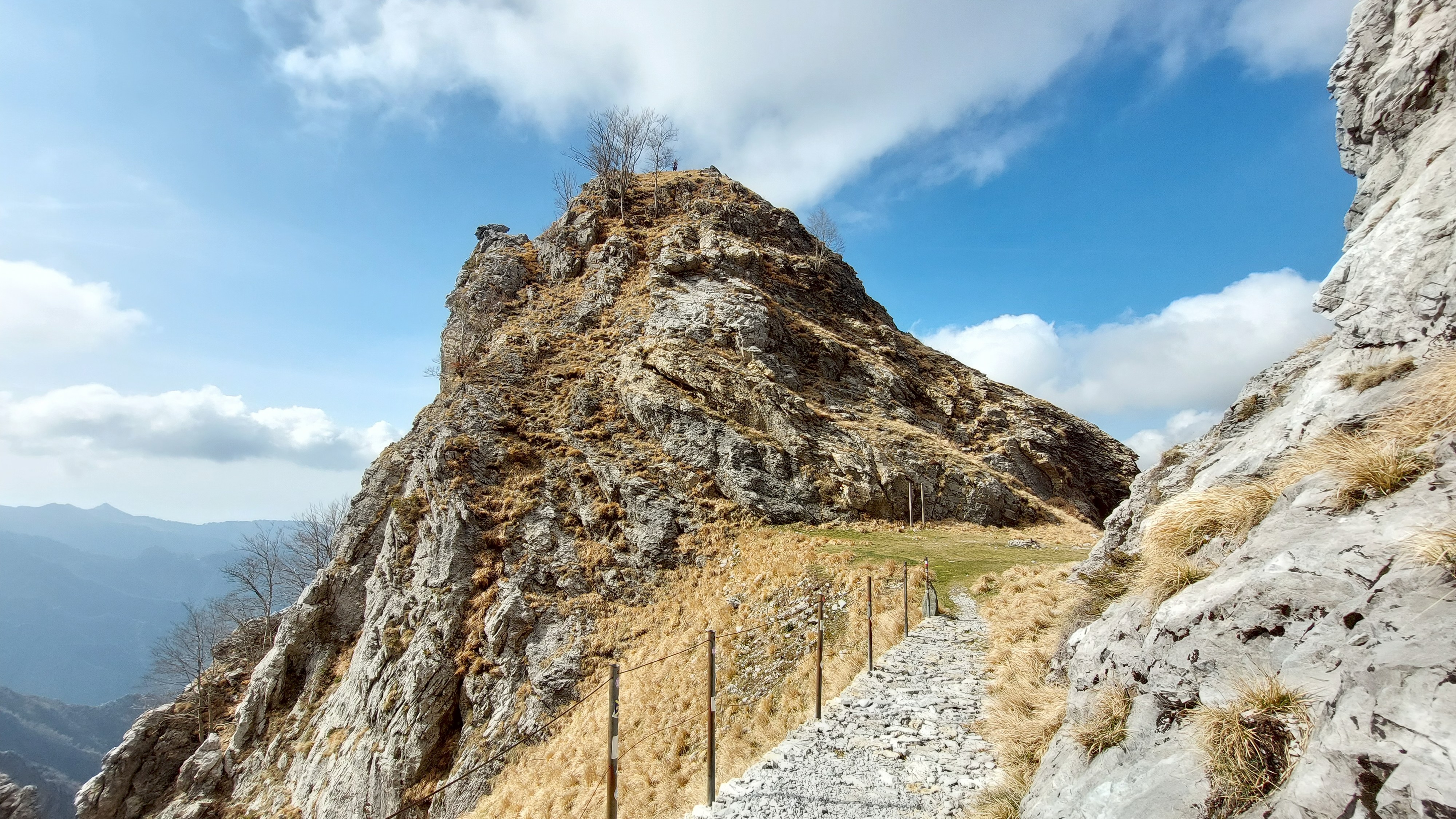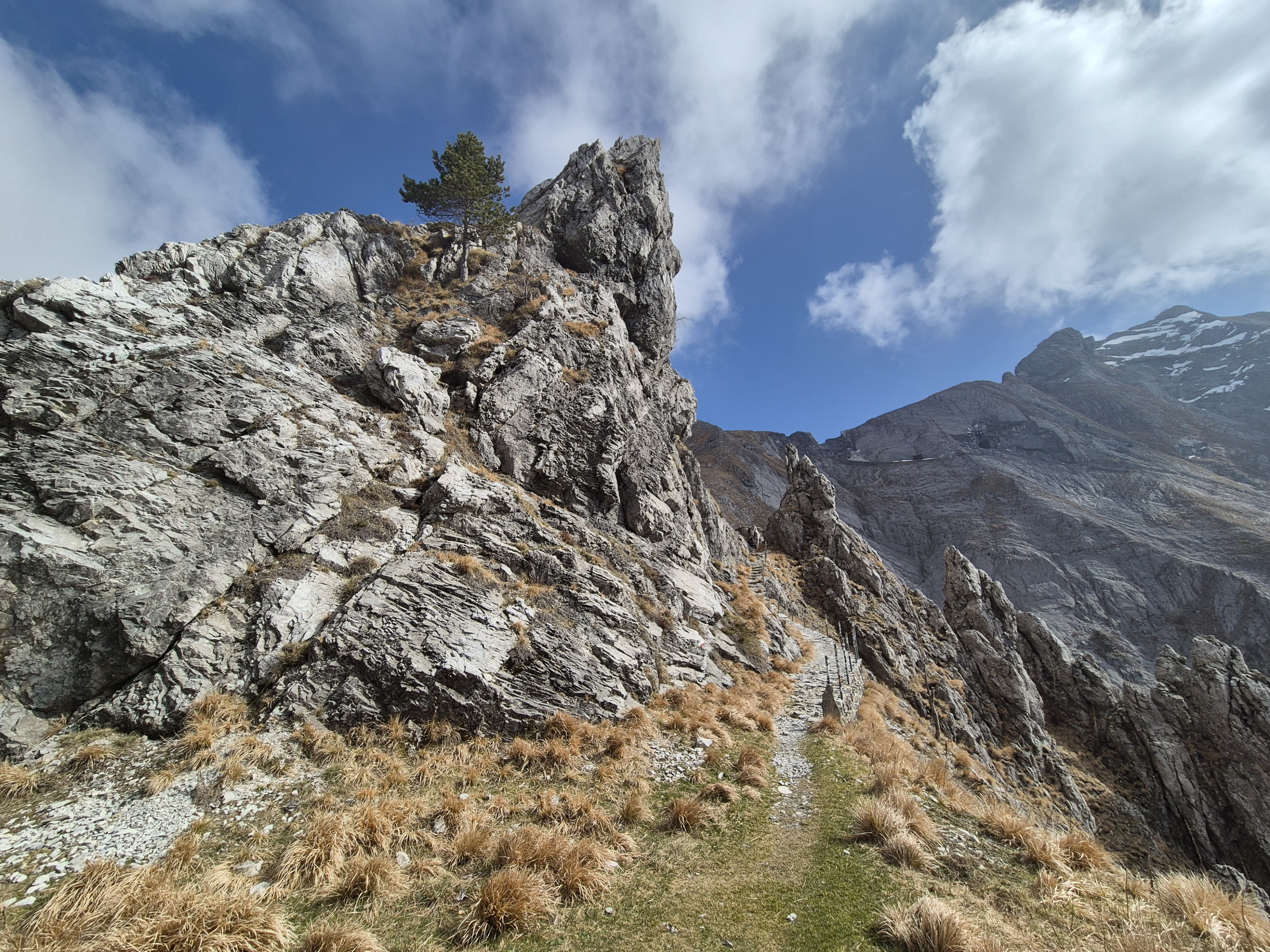 In alto attira lo sguardo la Tambura, montagna slanciata ed elegante; lasciamo a sinistra il sentierino che porta all'evidente accesso di una miniera di ferro abbandonata, poi la stessa via Vandelli che prosegue fino a valicare la cresta al passo della Tambura, e restiamo a destra raggiungendo subito una sella che permette di accedere alla zona dei Campaniletti, spettacolari guglie rocciose dove è possibile individuare tracce di vie d'arrampicata: saliamo a dx sul facile picco più alto (1459m) per goderci il bellissimo panorama circolare e studiare il cammino che ci aspetta.
