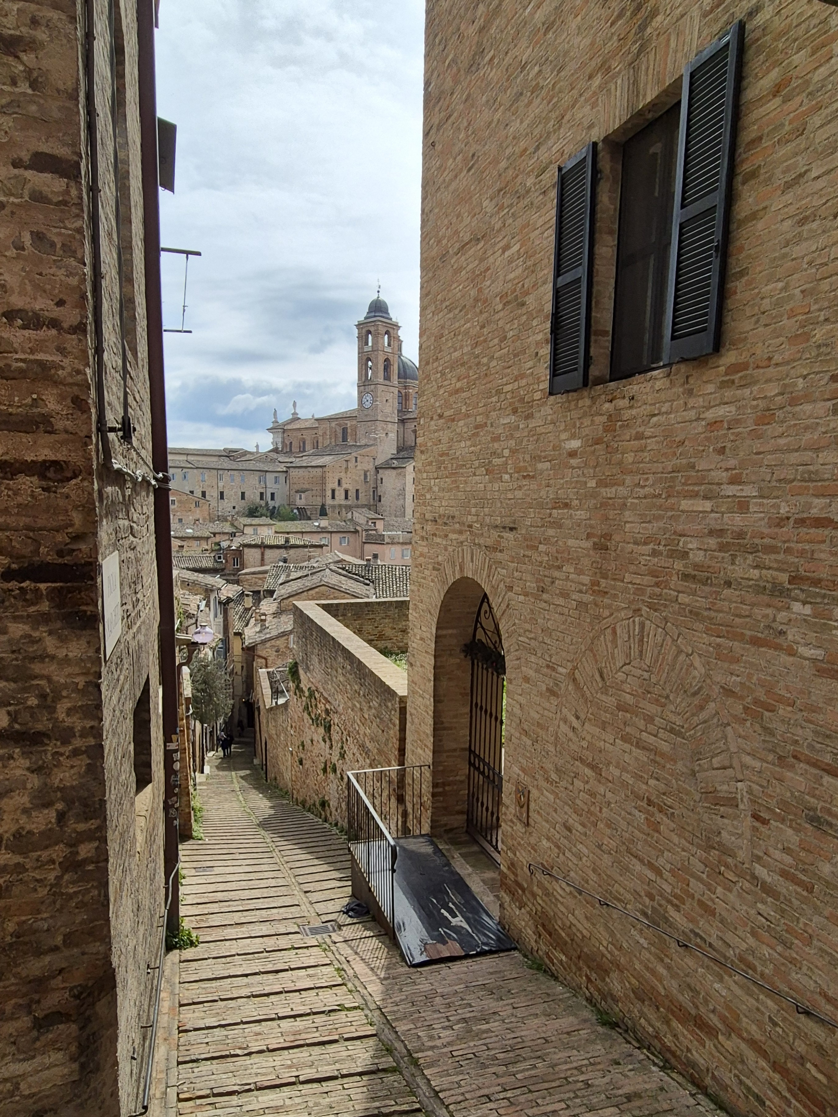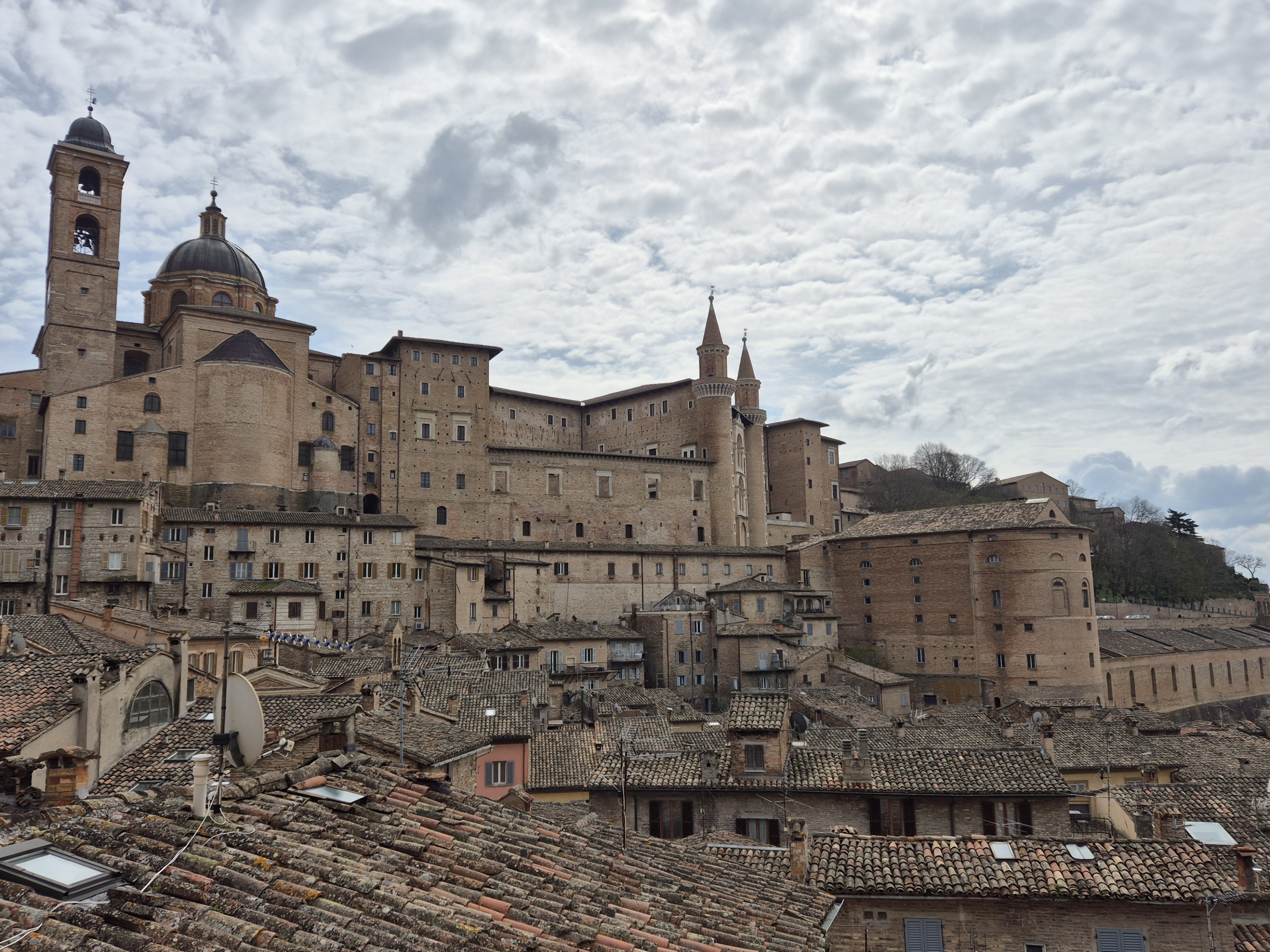 Dalla finestra della camera contigua all'aula affrescata è splendido il panorama verso il centro monumentale di Urbino.